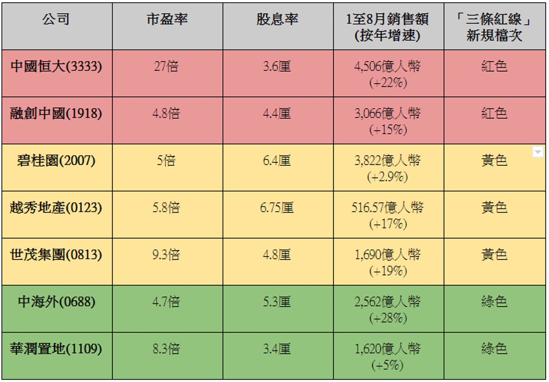 比較其他內房股,目前碧桂園及越秀的股息回報率較其他內房股高,分別有6.4厘及6.75厘,而其風險區域屬黃色。