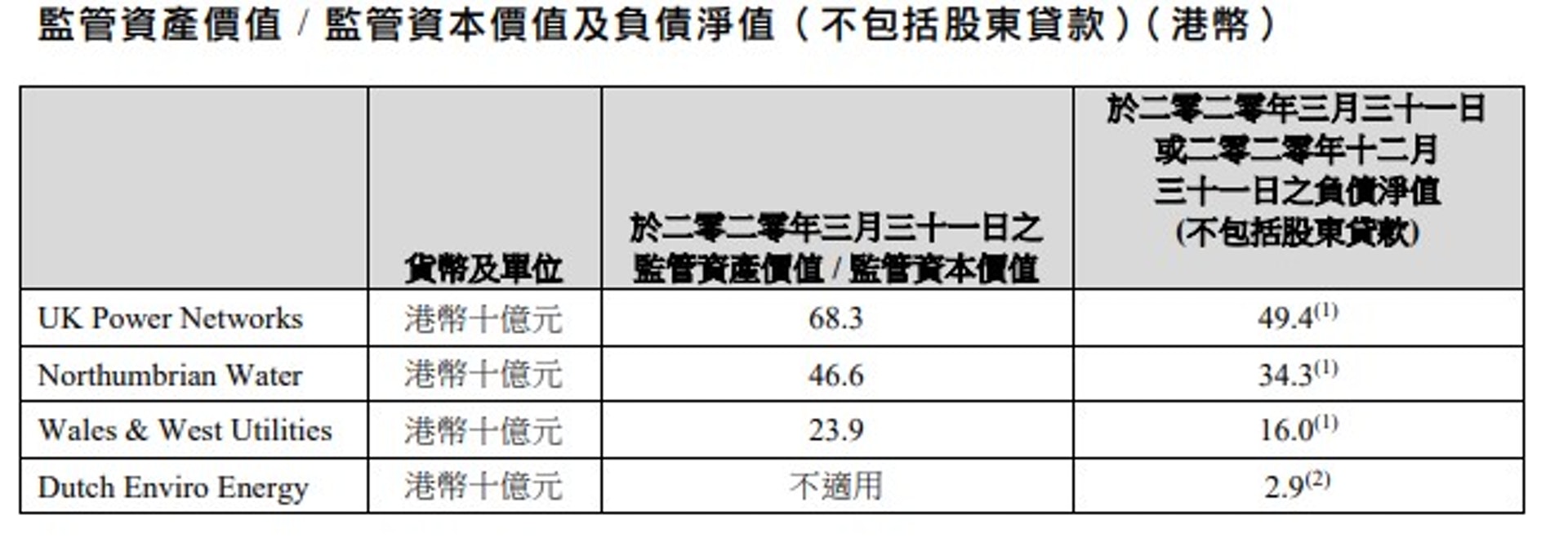 不過,若以監管資產價值(Regulated Asset Value,RAV)計,據公告列出上述資產截至2020年三月底的RAV,單是三項英國資產,按交易權益比例計,價值逾250億元,未計荷蘭資產,其成交價已折讓33%。